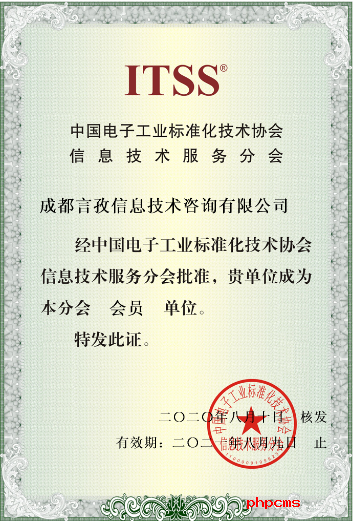 2020年8月,經(jīng)中國(guó)電子工業标準化技術協會(huì)信息技術服務分會(huì)審核批準,成(chéng)都(dōu)言孜信息技術咨詢有限公司正式成(chéng)為了ITSS會(huì)員單位,入會(huì)後(hòu)將(jiāng)有助于我公司與行業優秀企業保持緊密溝通與交流,促進(jìn)我公司在IT行業的服務能(néng)力的價值和效能(néng)。